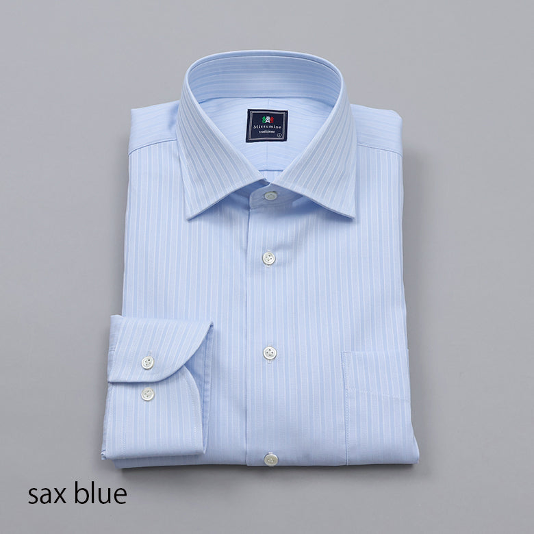 ジャガード織りでストライプ柄を表現したセミワイドカラーのワイシャツ。