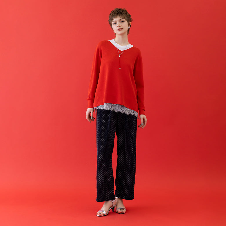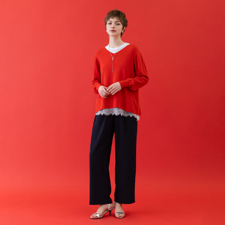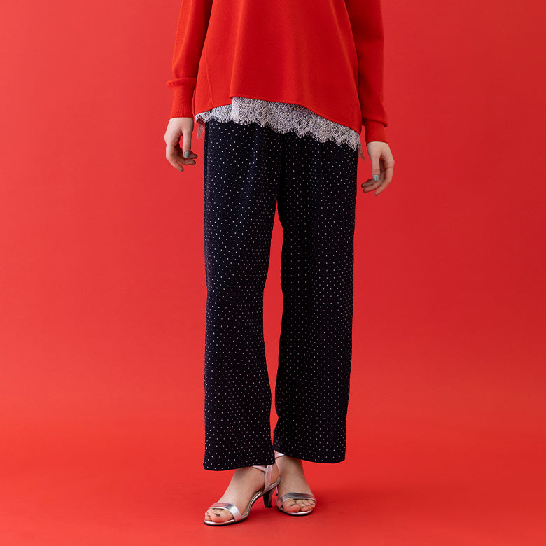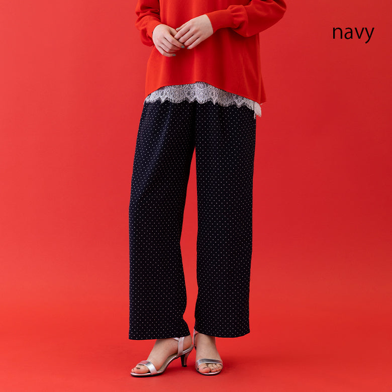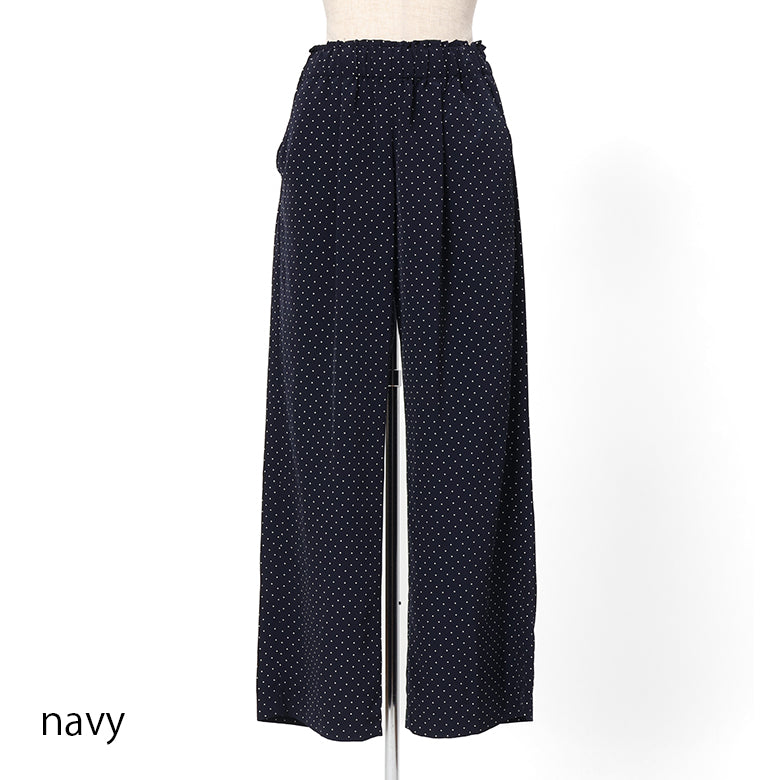 ドット柄ゴムギャザーパンツ