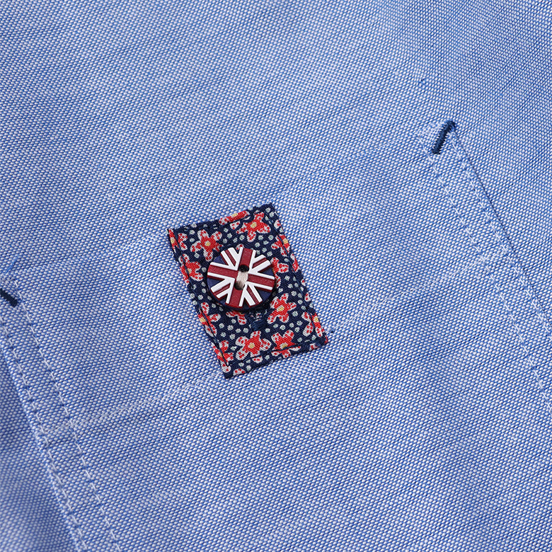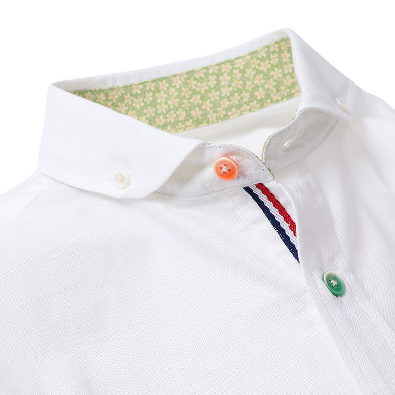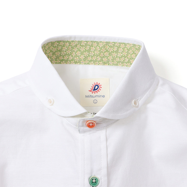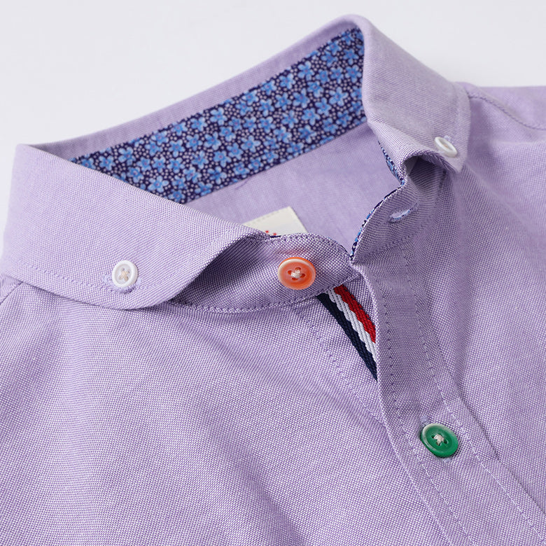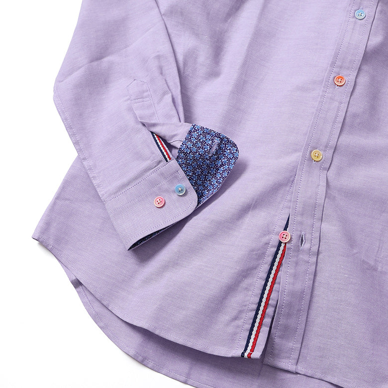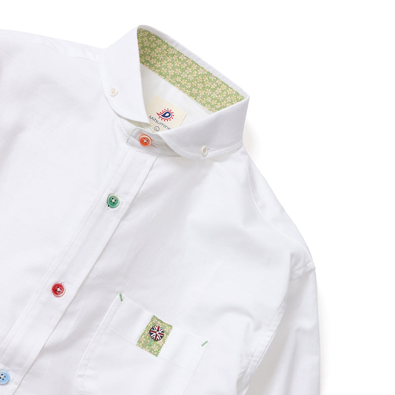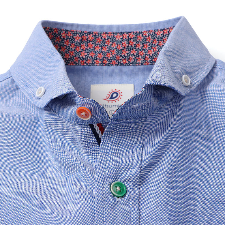カラフルなボタンがアクセントになったオックスフォードシャツ。