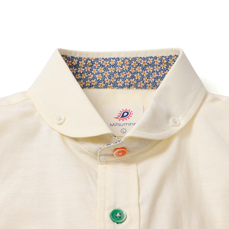 立ち襟仕様の本格的なつくりになっていますが、カジュアルな着こなしから、ドレスアップのコーディネートまで幅広くお使いいただける程よいバランスのシャツです。