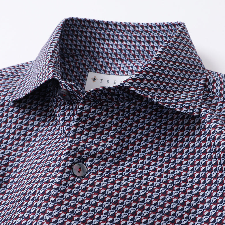 立ち襟仕様の本格的なつくりになっていますが、カジュアルな着こなしから、ドレスアップのコーディネートまで幅広くお使いいただける程よいバランスのシャツです。
