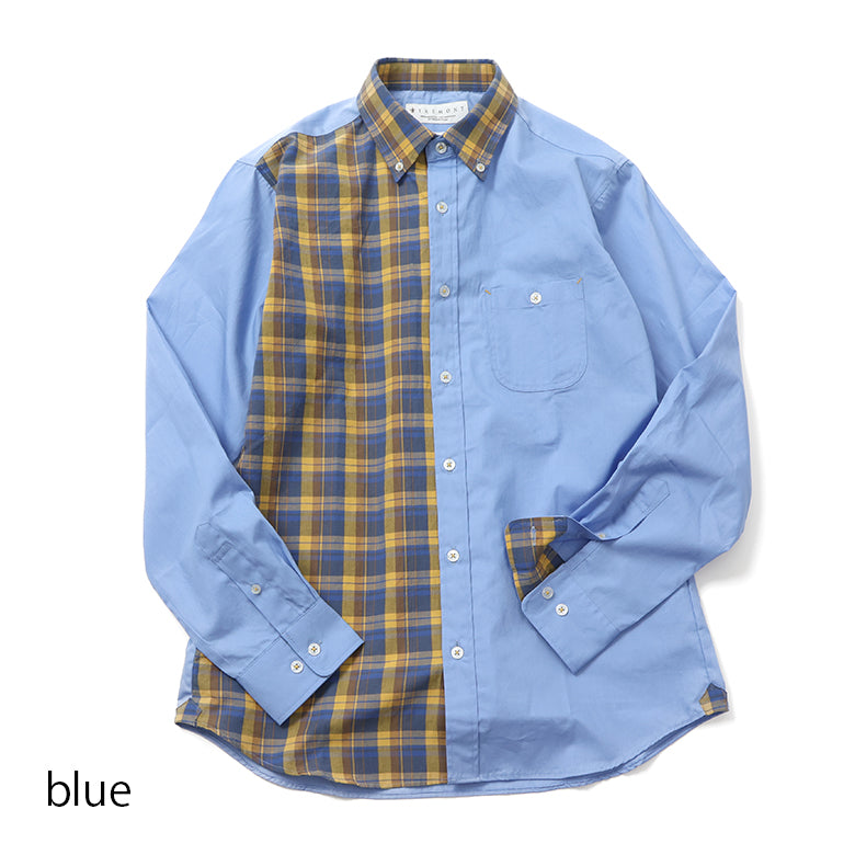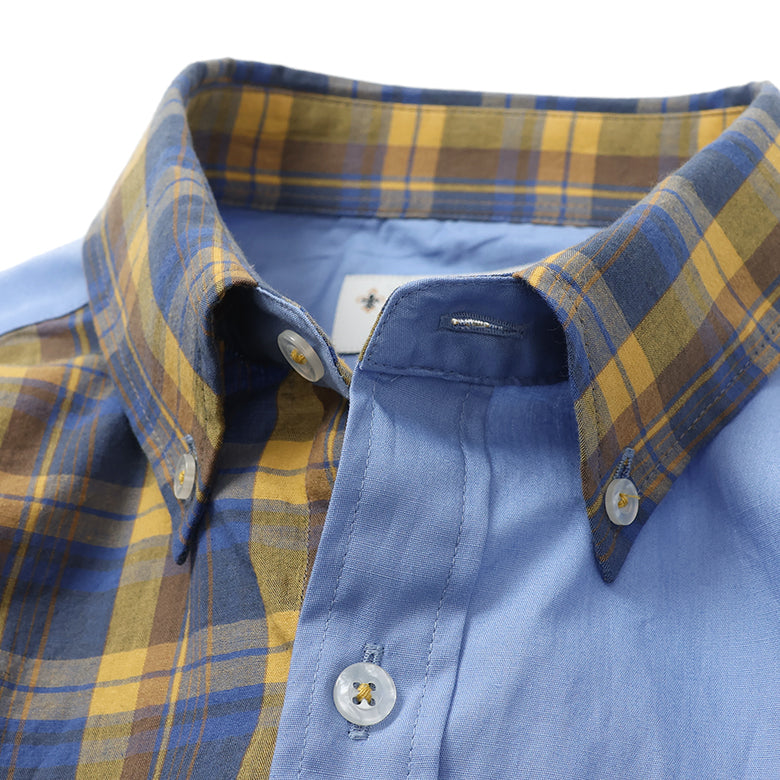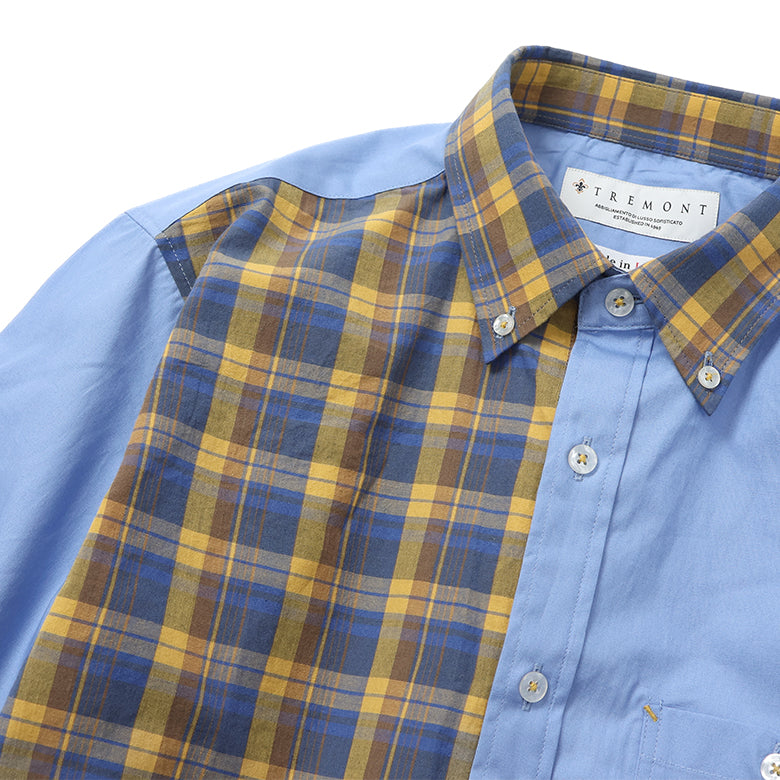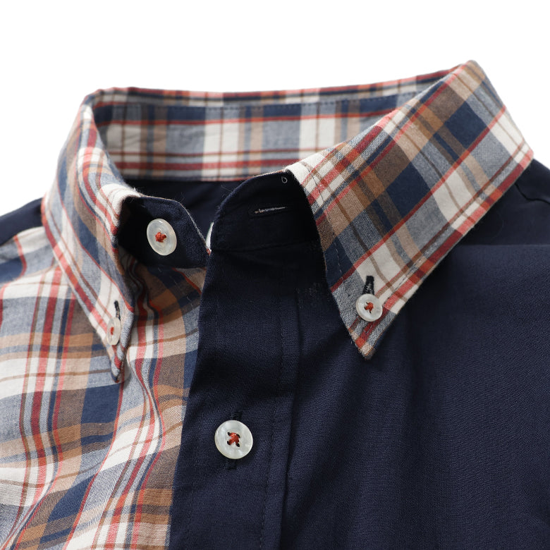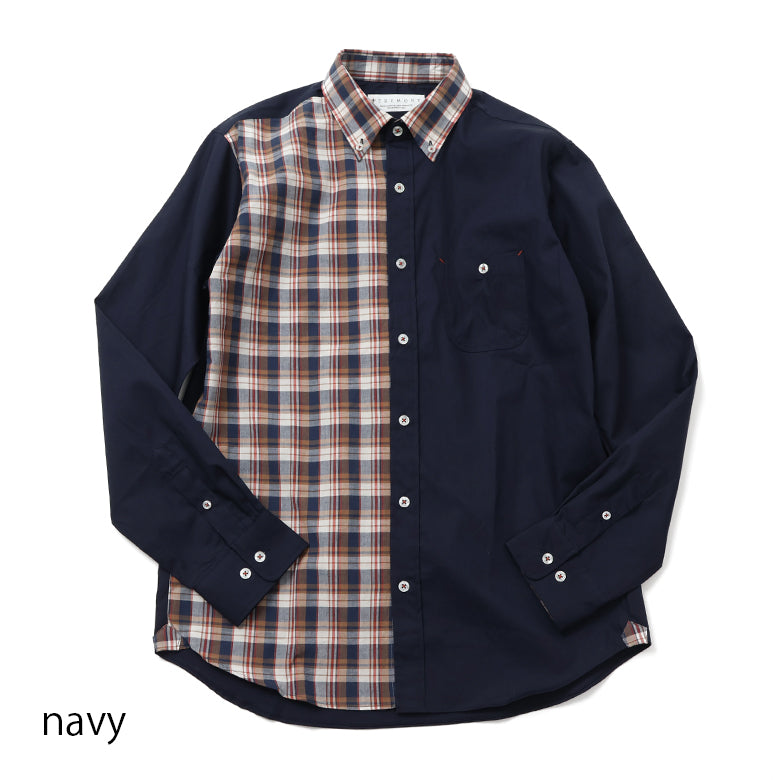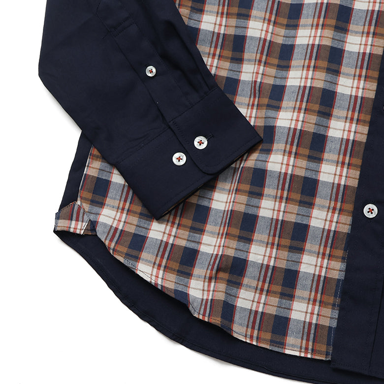 チェックと無地で大胆に切り替えたデザインが存在感抜群の一枚。