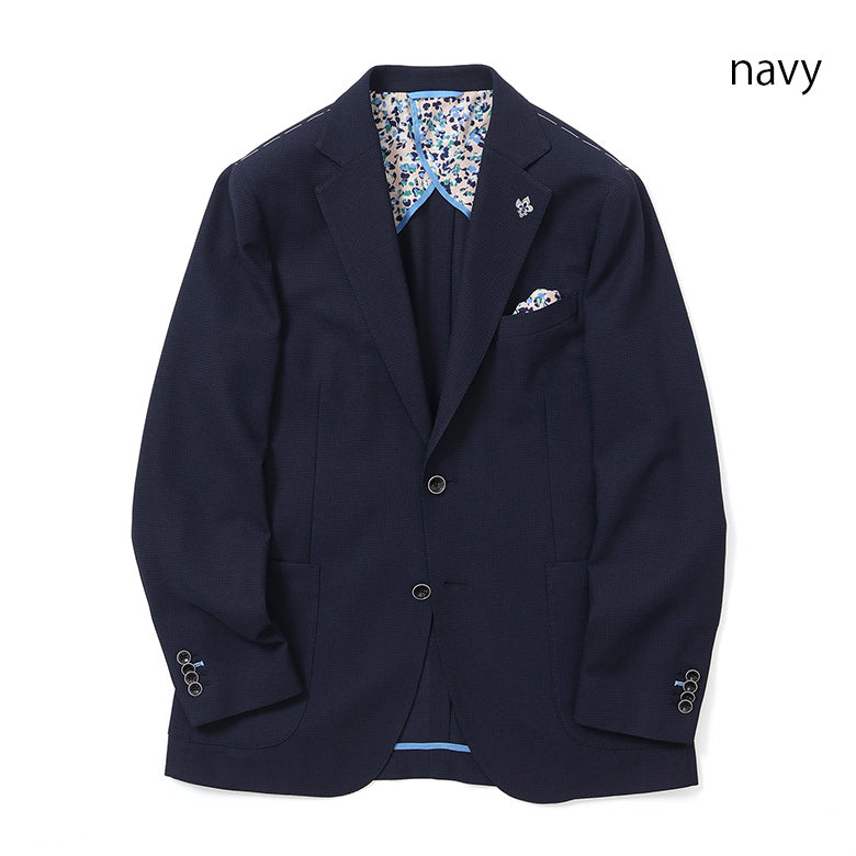 立体感のあるカラミ織素材を用いたジャケット。