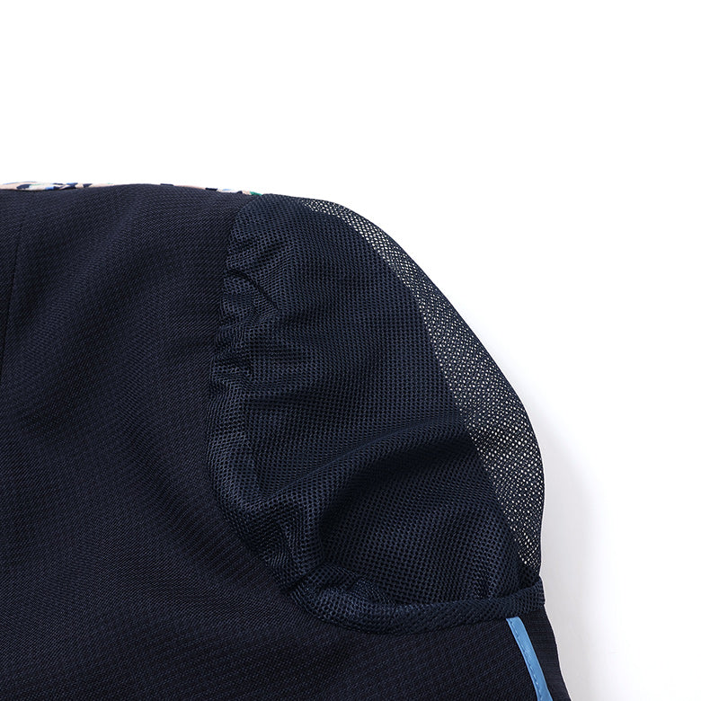 袖裏にメッシュを施し、Tシャツの上からでもベタつかず快適に着用できます。