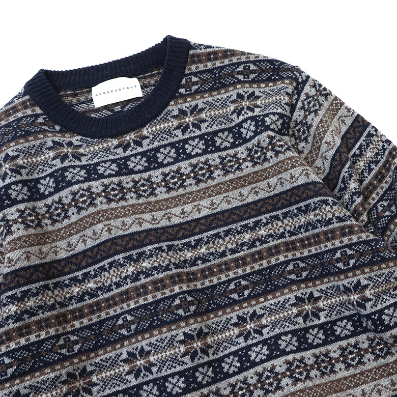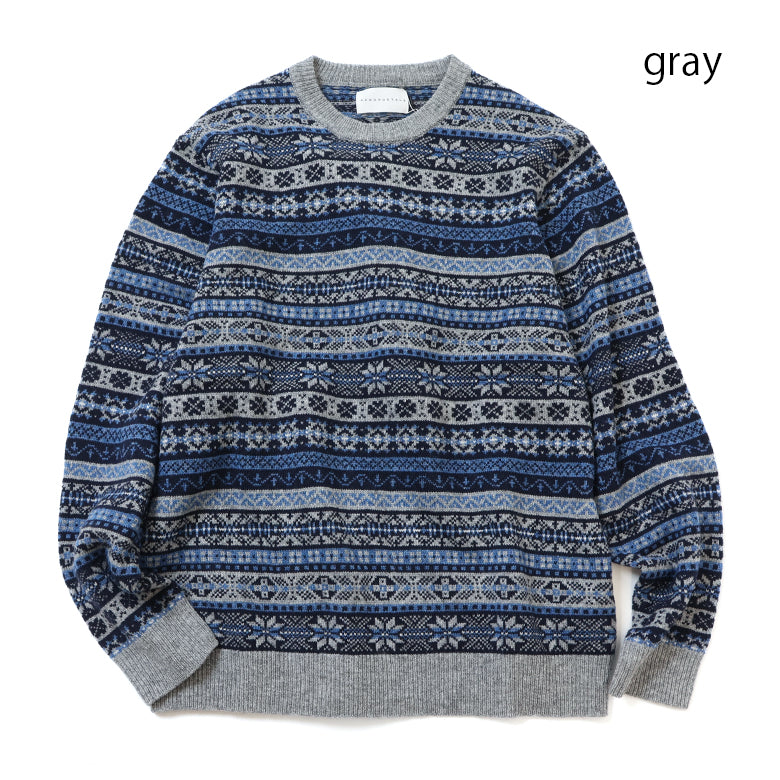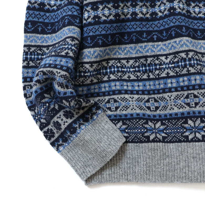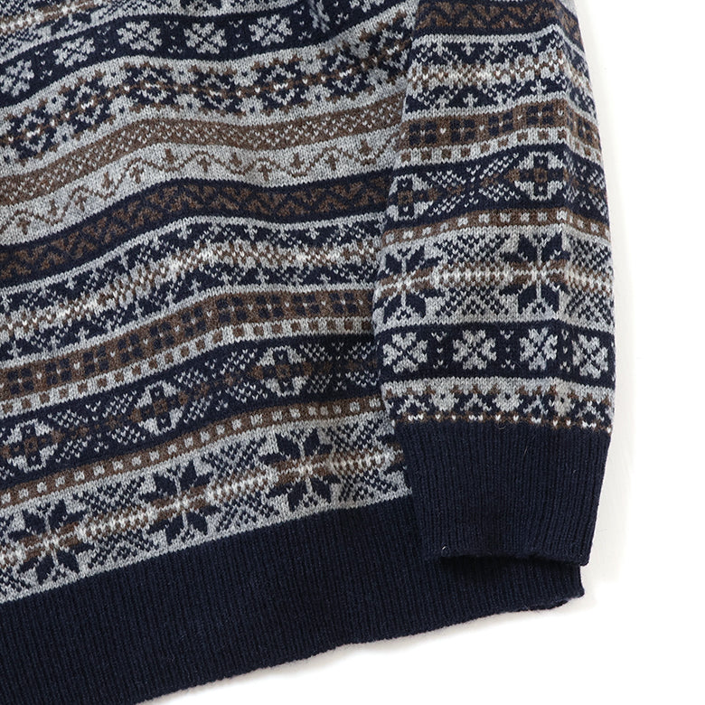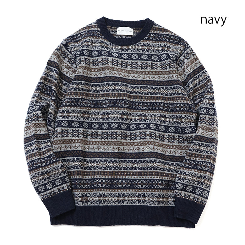 秋冬らしいフェアアイル柄のニットは、スタイリングのアクセントとして活用していただける一着になっています。