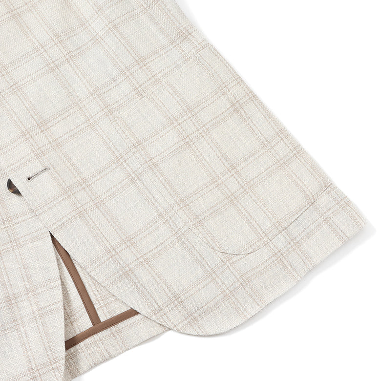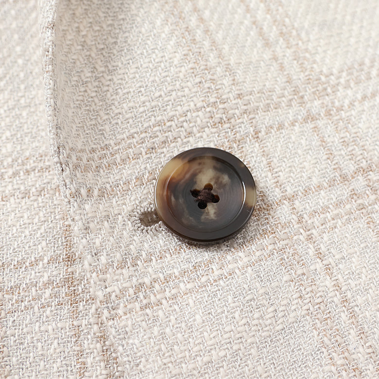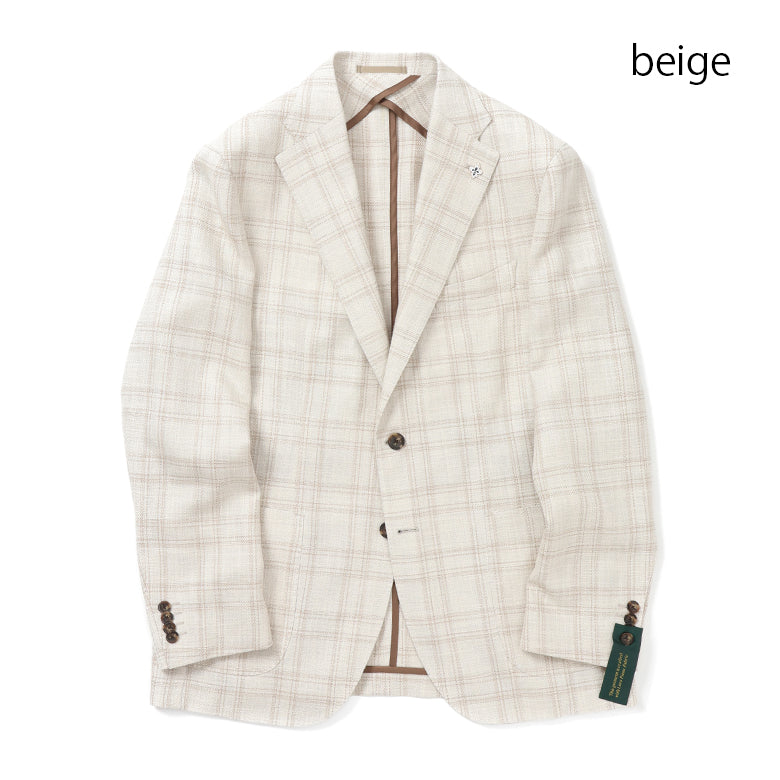 ウール・コットン・シルク・リネンをバランスよく織り上げた、春夏らしい軽やかな素材のジャケット。 やわらかく優しい肌触りで、ナチュラルな風合いとさりげない光沢感が魅力です。