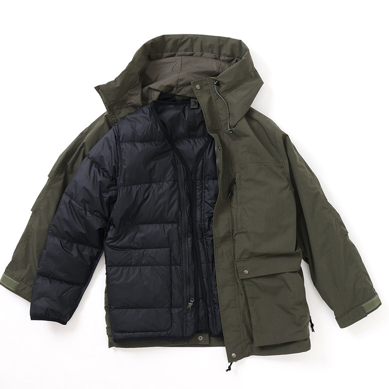 それぞれ単体でもアウターとして着用できる高い汎用性があります。タウンユースからアウトドアシーンまで対応する万能アウターです。