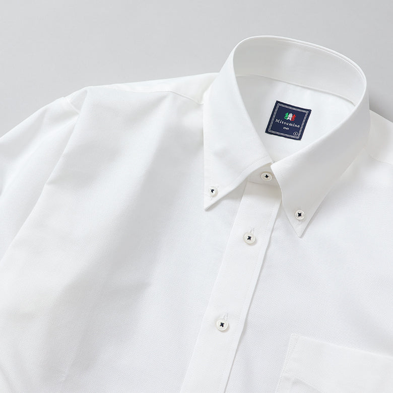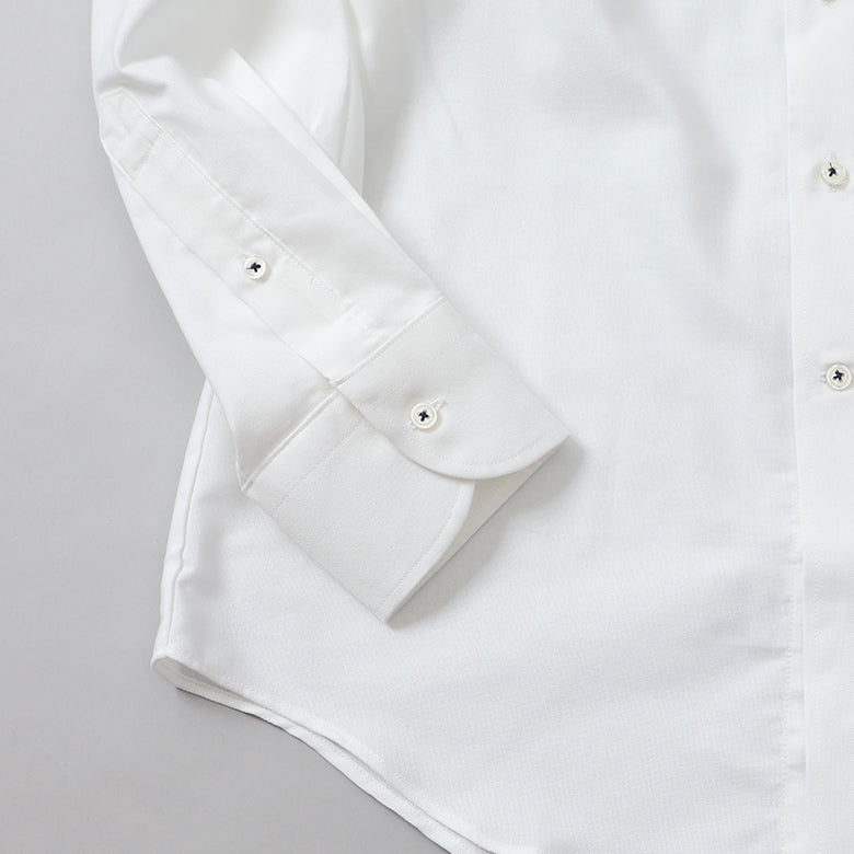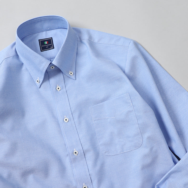 オックスフォード生地を使用したボタンダウンのドレスシャツ。