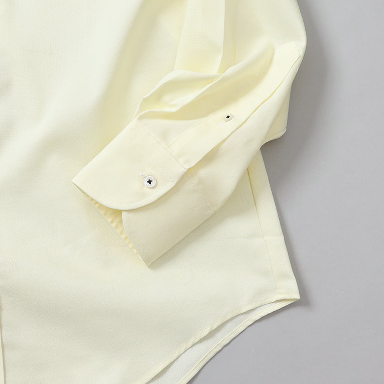 一般的なシャツよりもしわや型崩れが少なく、アイロンがけが簡単な形態安定加工のドレスシャツ。