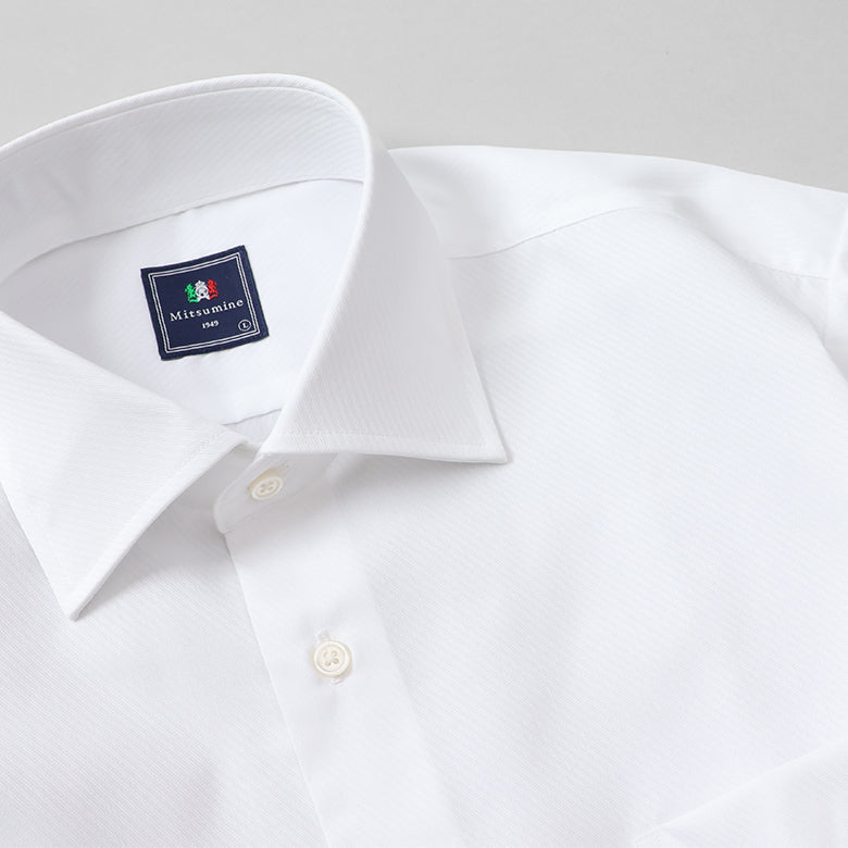 一般的なシャツよりもしわや型崩れが少なく、アイロンがけが簡単な形態安定加工のドレスシャツ。