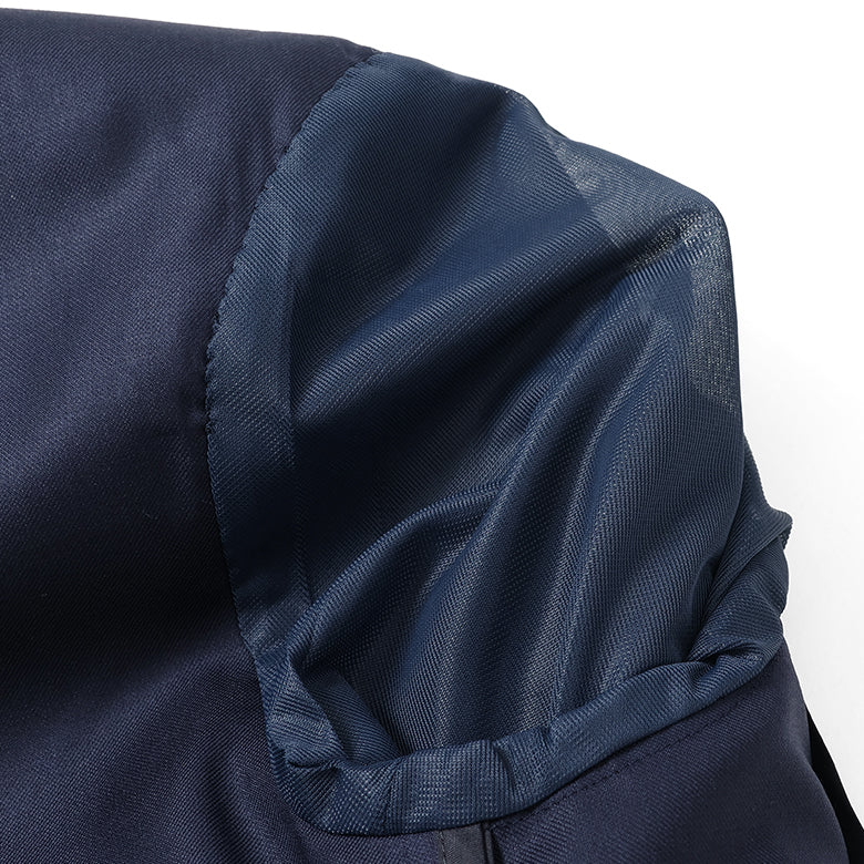 パットや芯地を極力省き、軽くソフトな仕立てに加え、立体的なフォルムに仕上がっています。袖裏もメッシュなのでベタつきません。