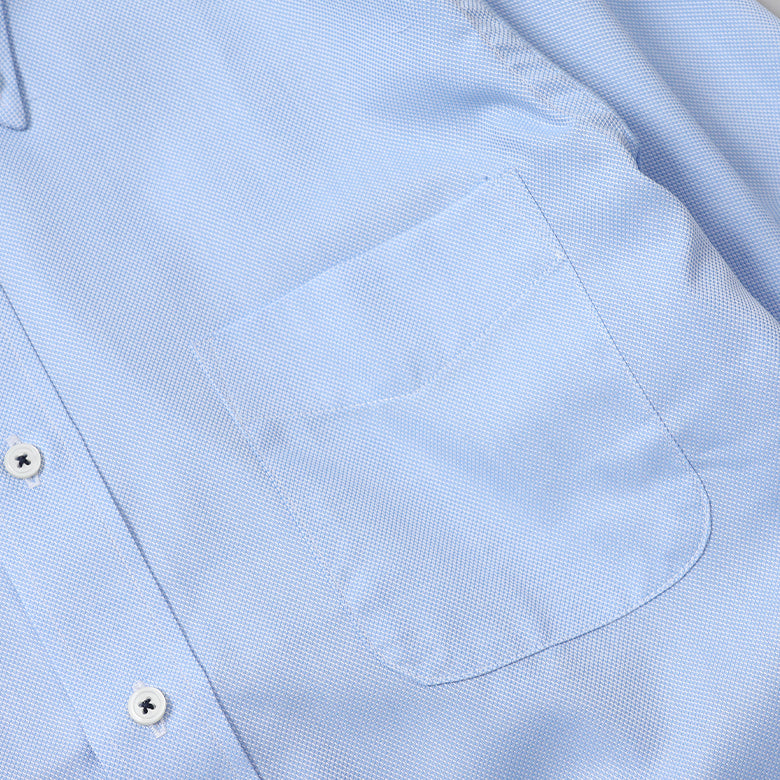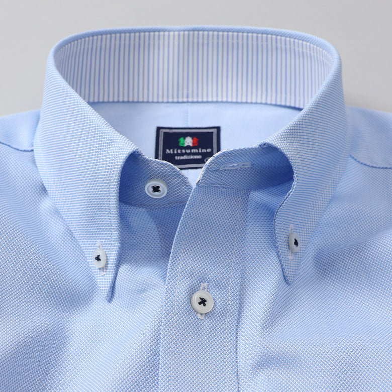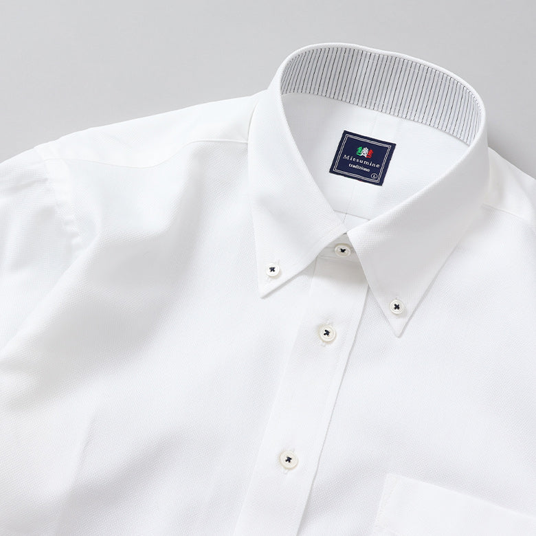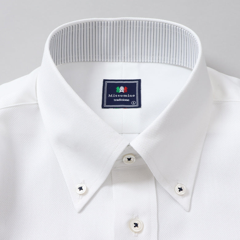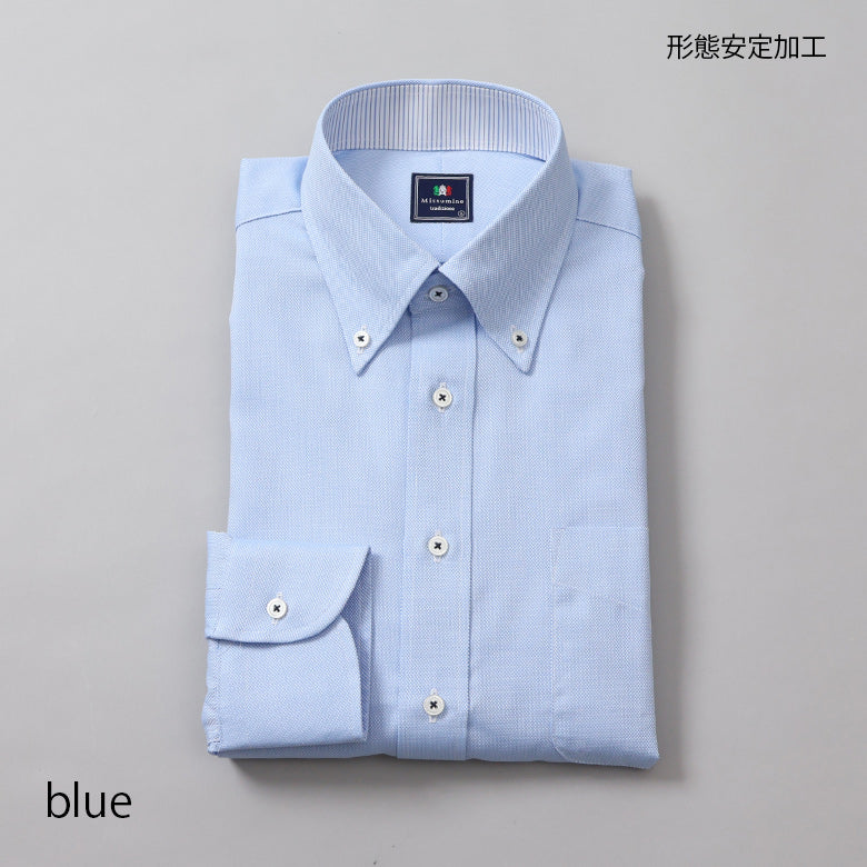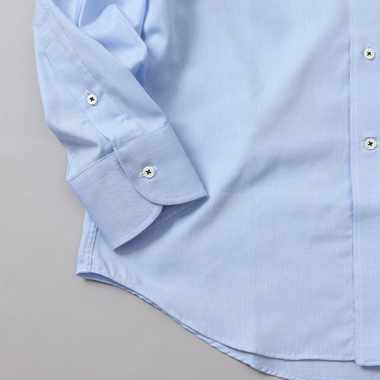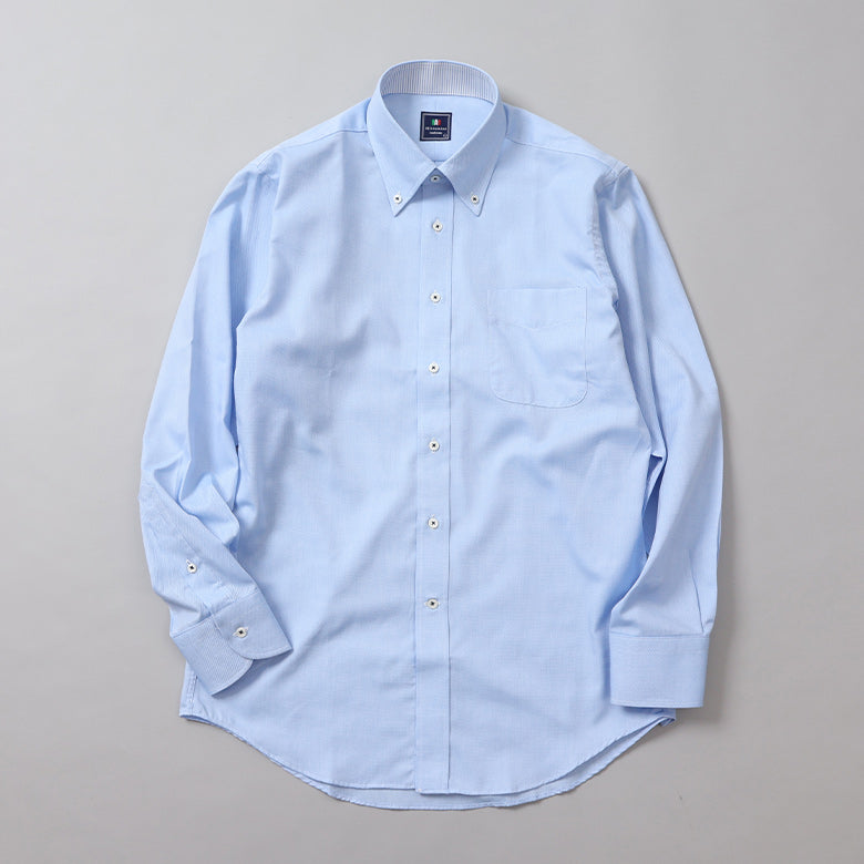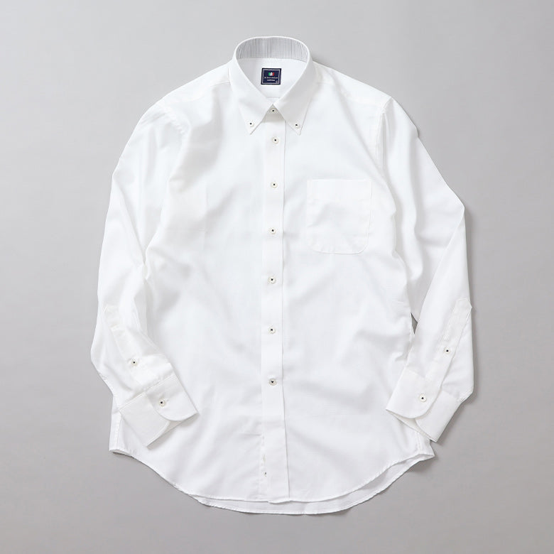 一般的なシャツよりもしわや型崩れが少なく、アイロンがけが簡単な形態安定加工のドレスシャツ。